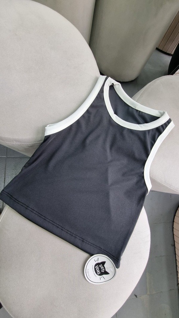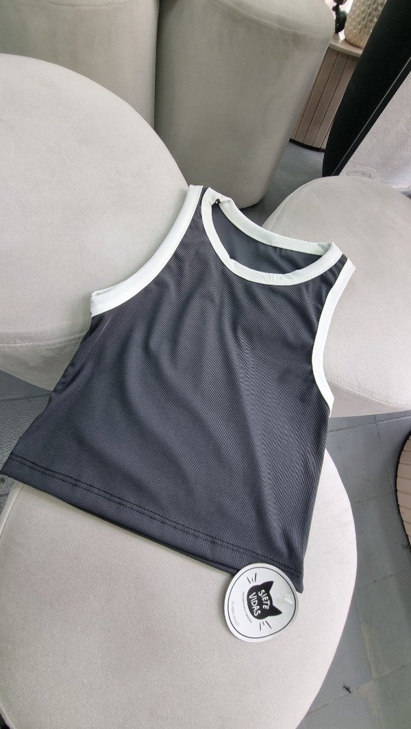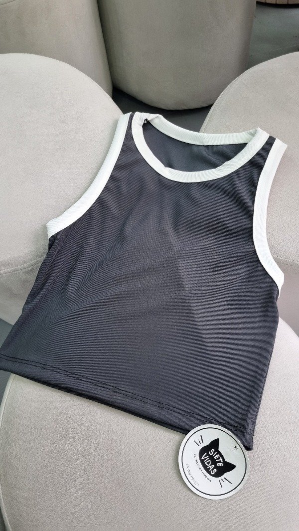 Musculosa de morley microfibra gris con bordes blanco.
